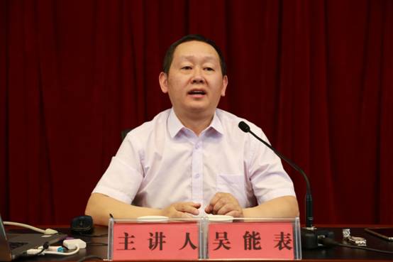 5月28日下午,贵州工程应用技术学院2018年干部培训第五场报告会在身修讲堂举行,西南大学教务处长、教授、博士吴能表受我校邀请作了主题为“教学分析与教学策略”的辅导报告。各学院分管教学院长、教研室主任、专业负责人、教学骨干、近三年入职的教师和教师代表聆听了报告。报告会由教务处副处长彭双艳主持。