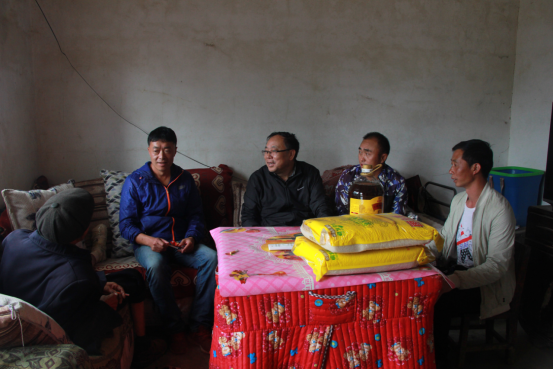 在赫章县朱明乡,汤宇华与乡镇干部进行座谈交流,并督察我校挂职干部和看望慰问了安继祥、安继文、安文方等困难群众。