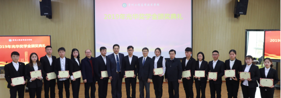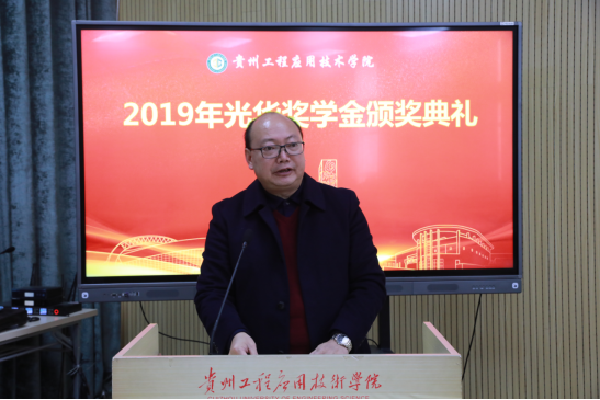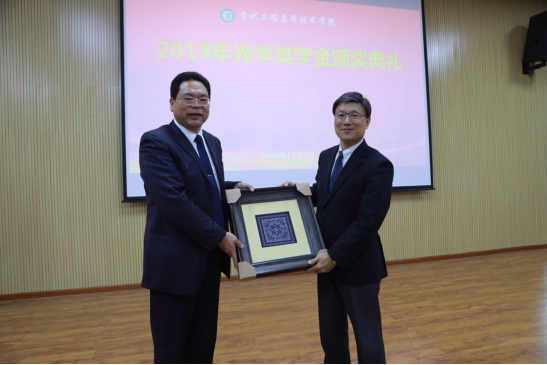 12月9日上午,贵州工程应用技术学院2019年光华奖学金颁奖典礼在新时代讲习所举行。光华教育基金会董事曾达梦,校长王建平,党委副书记汤宇华,副校长李琳出席典礼。学校相关部门负责人、各学院党总支书记、辅导员、2019光华奖学金获得者及部分学生代表参加典礼。