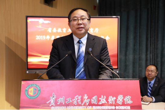 宋广强代表检查组作讲话,他介绍了本次思想政治工作检查的目的、方式和程序。他表示,通过参观黔西北红色文化传承成果展示中心、观看舞剧《林青的远方》部分片段及校园文化活动开展情况展示,听取学校思想政治工作开展情况汇报后,对贵州工程应用技术学院在开展思想政治工作以及意识形态工作上取得的成绩印象很深。他对我校的思想政治工作给予了肯定,认为贵工程思想政治工作政治站位高、思政队伍强、载体活动多、规章制度全、育人体系实。