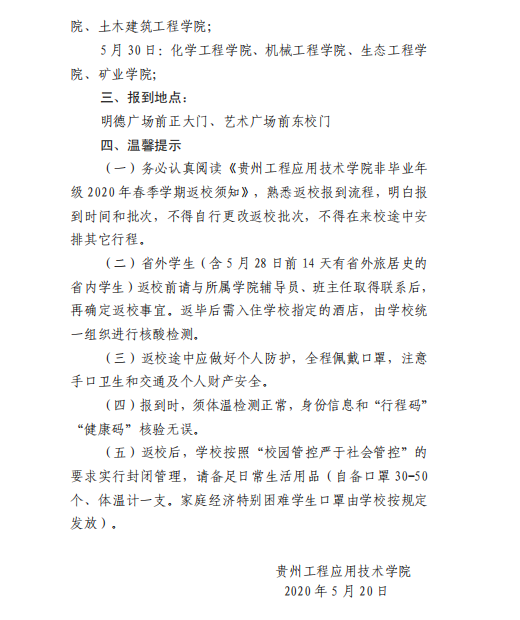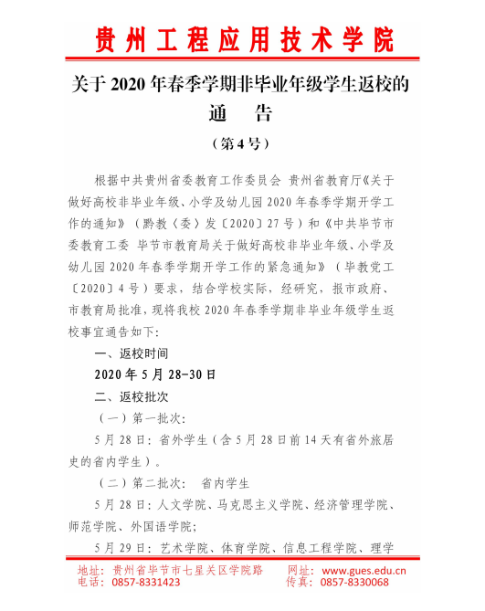 关于2020年春季学期非毕业年级学生返校的通告(第4号)
