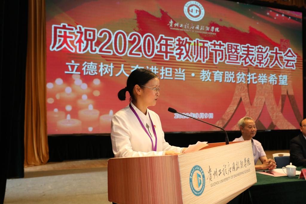 会上,参会人员全体起立奏唱中华人民共和国国歌;令狐荣锋致辞;新进教师作入职宣誓;李琳宣读贵州工程应用技术学院优秀教师、优秀教育工作者、优秀思想政治理论课教师表彰文件;向贤礼宣读2020年光荣退休教职工名单;汤宇华宣读30年教龄荣誉称号获得者名单;校领导为获奖者颁发奖金及证书;优秀教师代表彭雪莲发言;王建平讲话;最后,全体人员起立合唱《歌唱祖国》,大会在雄壮的乐曲声中圆满落下帷幕。