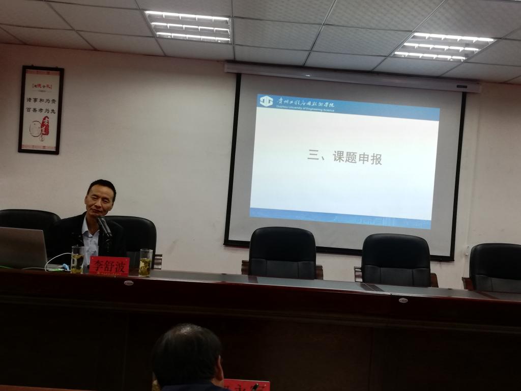 2020年9月16日,贵州工程应用技术学院师范学院院长李舒波教授应威宁县石门民族中学挂职副校长吴雪瑞邀请在石门中学开展题为“中小学教师如何开展教育科研”的培训会。培训会由吴雪瑞主持,石门乡教育管理中心主任陶永军、石门中学全体在编在岗教师和全乡各小学优秀教师代表参加。
