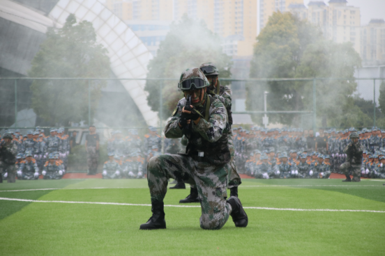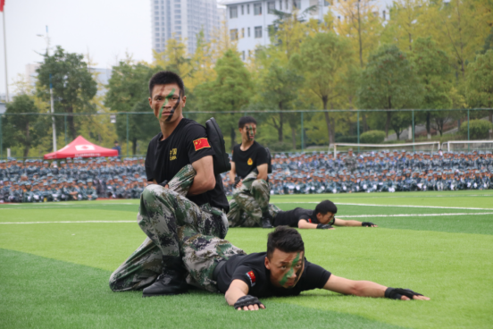 军训汇报表演在全体师生奏唱中华人民共和国国歌中拉开帷幕。军训学员花式队形变换;四营一连代表全体军训学员作汇报展示;学生军训教官与部分学员分别进行了擒敌拳,战术基础动作,特种战术,摔擒、倒功,花式枪操,手语操《听我说谢谢你》等精彩汇报表演。表演充分展现了新时代大学生朝气蓬勃、斗志昂扬的精神风貌。大会上,我校武装部部长陈朝祥宣读《关于表彰2020级军训先进集体和个人的决定》;出席领导为先进连和优秀教官代表、优秀学生代表颁奖;参训新生代表艺术学院2020级美术本科班李蜡代表全体军训学员发言。