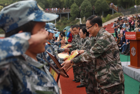 10月10日下午,我校2020级新生军训成果汇报暨总结大会在绣山田径场隆重举行。学校党委书记令狐荣锋,党委副书记汤宇华、向贤礼,党委委员、副校长李琳,党委委员、纪委书记郭永红出席大会。各综合职能部门负责人、各学院党总支书记、院长及分管学生工作的副书记(副院长)、全体辅导员老师、新生班班主任及2020级全体新生参加大会。大会由学工部副部长邓时琪主持。