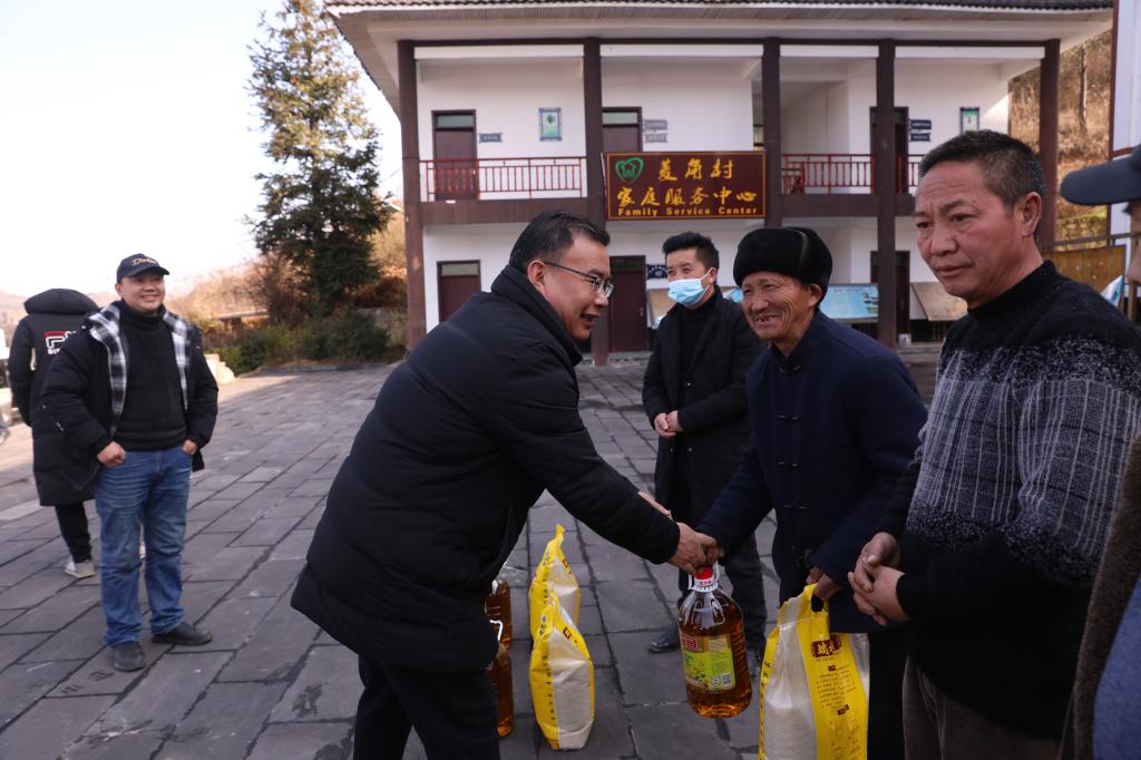座谈会前,党委组织部党支部、宣传部(统战部)党支部分别慰问了青杠村、菱角村的老党员。