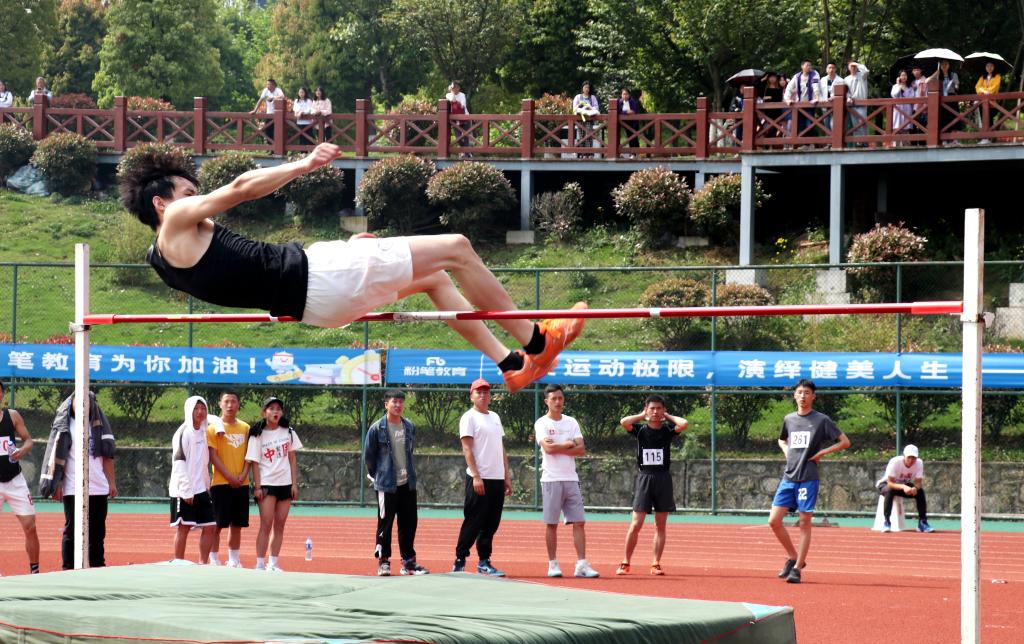 跳高比赛中,横竿升到一米二六,场外观众的目光齐刷刷地投向跳高场地,只见艺术学院的吴雪方在助跑线内量了一次步伐后,镇静片刻、开始助跑,近了,更近了,左脚猛地用力一蹬,两臂向上摆动,身子像飞燕一样腾空而起,向上跃去,顺利越过横杆,观众场也响起热烈的掌声,她持平了学校跳高比赛的记录,将带着这份珍贵的记忆和赛场上勇敢坚毅的精神继续前行,争取新的突破。体育学院2018级体育教育本科4班的王超以1.82米的成绩刷新学校男子跳高记录。在赛后的采访中他说,自己很热爱跳高这项运动,这次能取得好成绩还要感谢自己的学弟和身边的朋友们鼓励,不断激发自己的潜能,在最后一跳中打破纪录,他在采访中谈到,在今后的生活中也将继续坚持运动,争取在下一届运动会中超越自己。