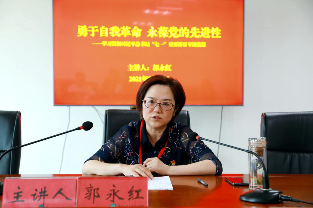 郭永红同志以“勇于自我革命 永葆党的先进性”为主题,从“党的六次标志性的自我革命历史”“党的百年历史是以自我革命引领保障社会革命的伟大历程”“勇于自我革命是百年大党风华正茂的基因密码”“以伟大的自我革命精神继续开创伟大社会革命新征程”等四个部分展开,带领大家回顾了我们党在百年历程中开展自我革命的历史,重温了党领导人民全面推动伟大革命的奋斗史、伟大自我革命的斗争史,解读了自我革命的基因密码。