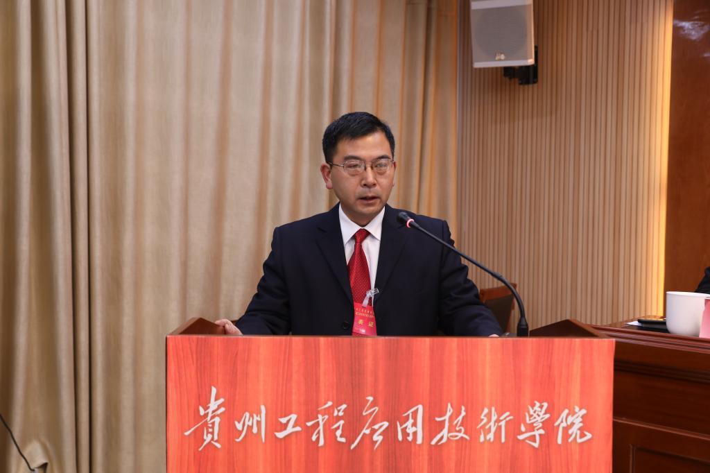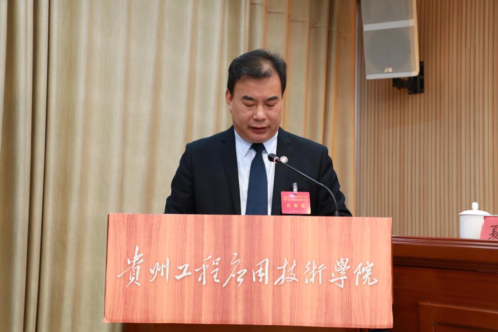 1月15日上午,贵州工程应用技术学院第二届工会会员代表大会开幕,开幕会在学校西区综合楼1202会议室举行。毕节市总工会党组成员、副主席彭菊,市总工会基层组织建设部部长聂莉;学校党委副书记、校长王建平,党委副书记汤宇华、向贤礼,党委委员、副校长李琳,党委委员、纪委书记郭永红,党委委员、副校长杨友昌,党委委员陈兴才、夏鲲出席;列席代表王天娥、陈健、高树娥;特邀代表王明贵、贾晋渝、吴雪瑞及全体工会会员代表参加开幕会。开幕会由向贤礼主持。