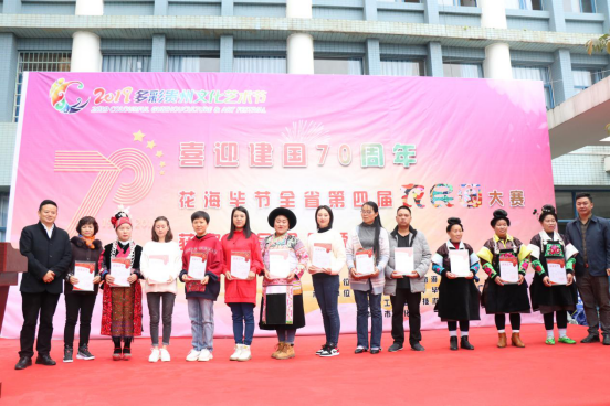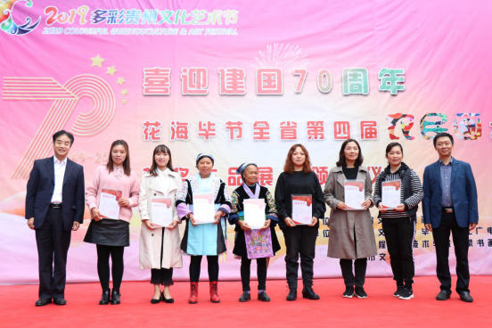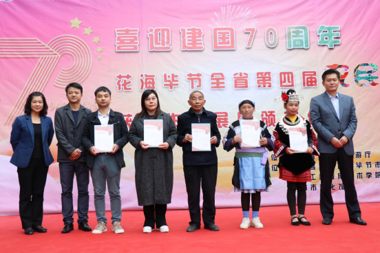 10月20日上午,由贵州省文化和旅游厅主办,贵州省文化馆、毕节市文化广电旅游局、毕节市文化馆、贵州工程应用技术学院乌蒙书画院承办,大方县农民画研究院、黔西县少年宫、遵义市文化馆、黔东南州文化馆和黔西南州文化馆协办的“庆祝新中国成立70周年暨2019多彩贵州文化艺术节——贵州省第四届农民画大赛颁奖暨开展仪式在我校举行。