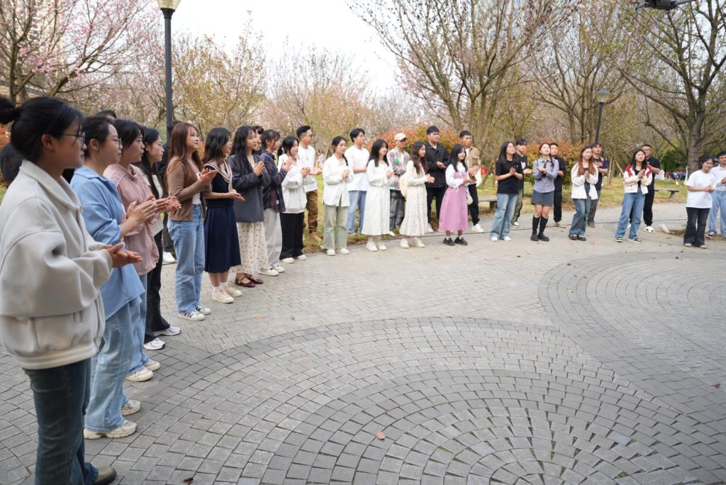 打击乐《阵头》振奋人心的鼓声如同春雷乍现,拉开了此次活动的序幕,热闹的氛围弥漫整个樱花园。
