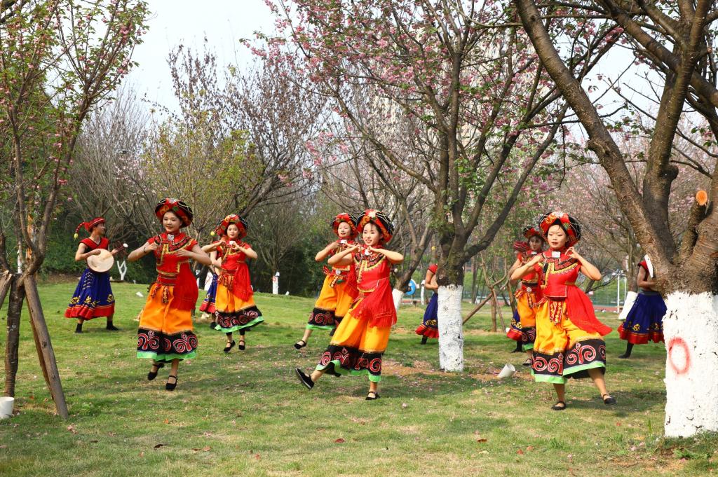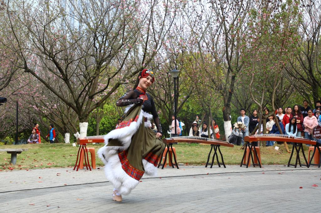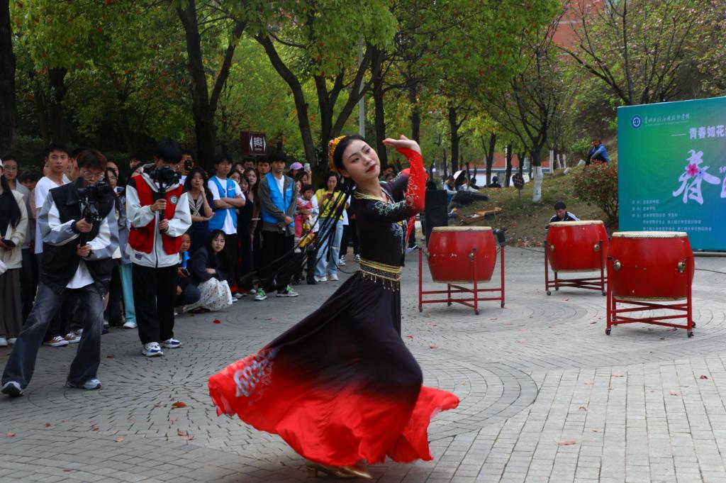 民族舞串烧,以热情洋溢的舞姿展示了青春的风采,与春景相得益彰,引得观众连连喝彩。