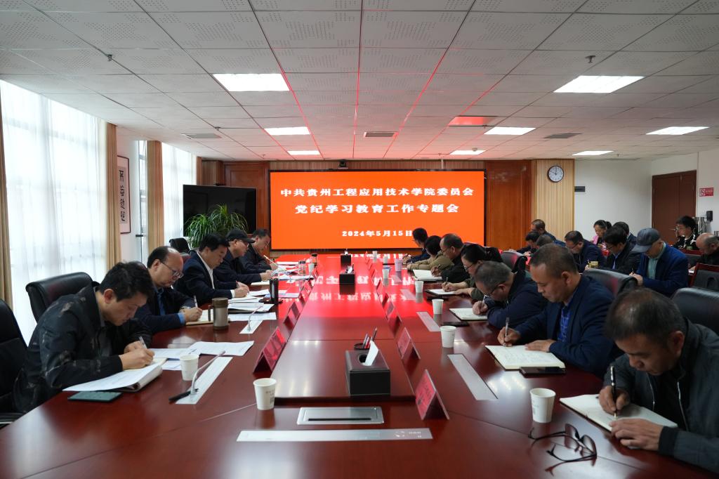 我校党委副书记向贤礼同志传达学习习近平总书记关于党的纪律建设的重要论述;党委委员、副校长李琳同志传达2024年5月9日徐麟书记在省委党纪学习教育工作专题会议上的讲话精神;组织部部长陈兴才同志传达贵州省省级层面党纪学习教育工作专班、省委组织部、省委教育工委关于党纪学习教育的有关文件精神,安排学校党纪学习教育5月重点任务。