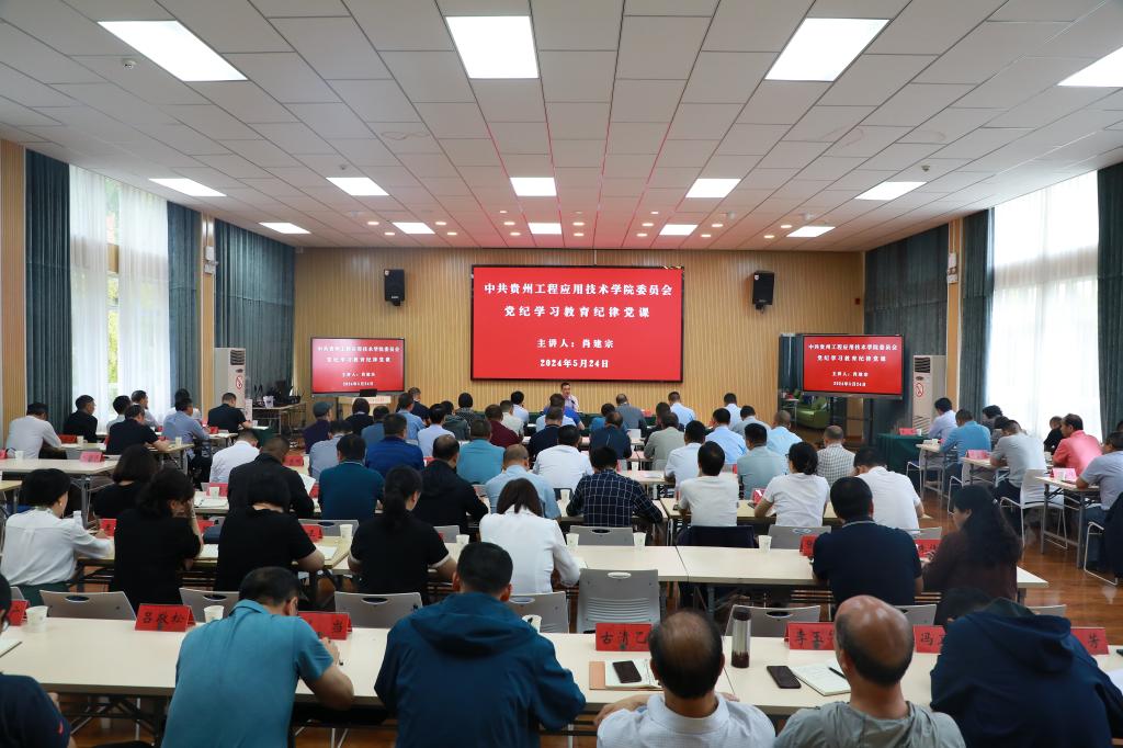为深入贯彻落实习近平总书记关于党纪学习教育的重要讲话重要指示精神,落实省委和省委教育工委部署,深入推进党纪学习教育走深走实,根据学校党纪学习教育工作安排,5月24日上午,我校党委书记肖建宗在新时代讲习所以“深入学习贯彻习近平总书记关于加强党的纪律建设的重要论述,推动学校党纪学习教育走深走实”为题,讲授党纪学习教育纪律党课。校党委副书记汤宇华主持会议并讲话。