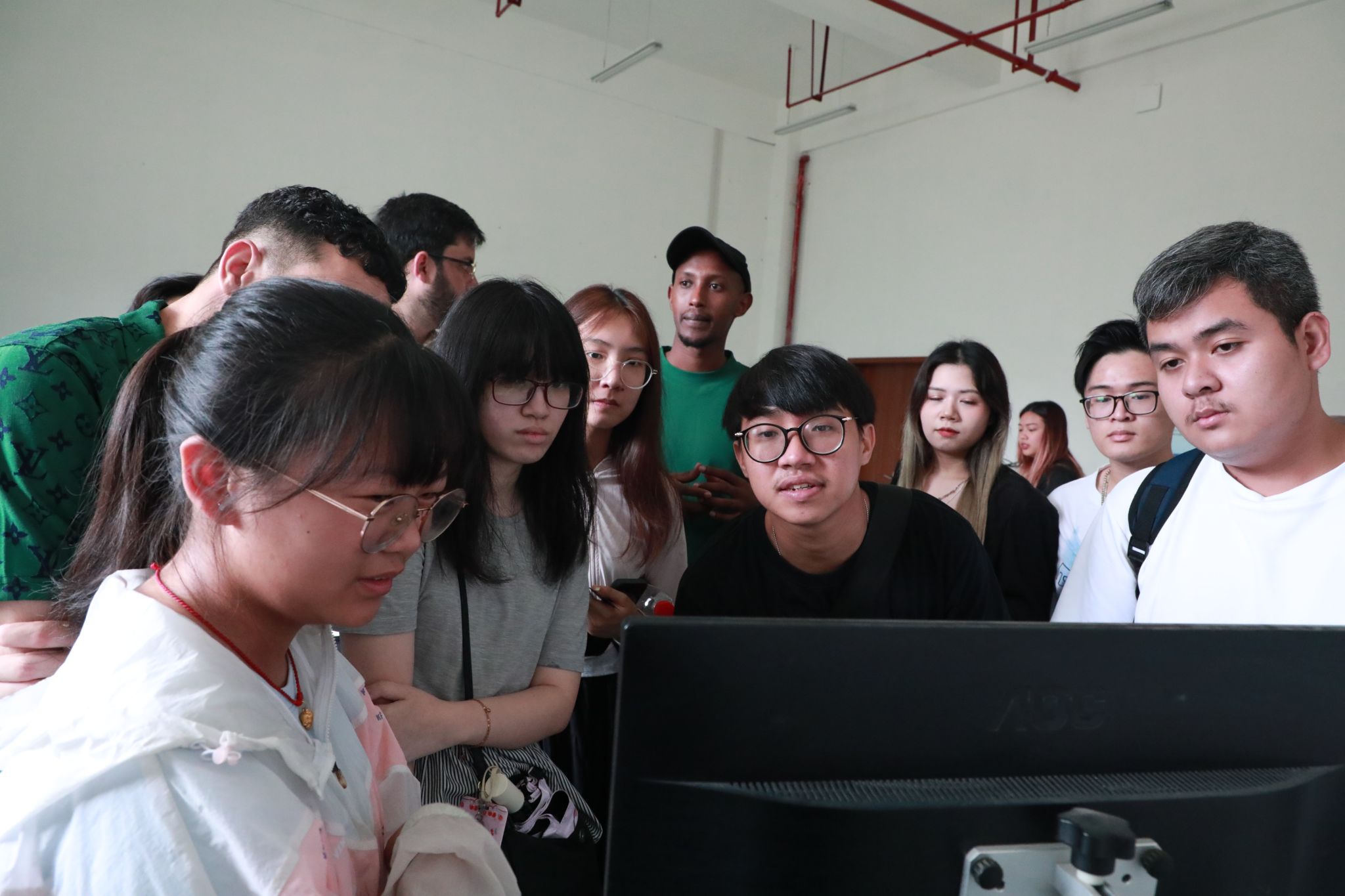 活动期间,我校机械工程学院院长晋芳伟教授带领参观人员前往东区工程实训中心,晋芳伟对远道而来的越南、俄罗斯、印度尼西亚、巴基斯坦、摩洛哥的同学们表示了热烈的欢迎并作简短的致辞。为了让同学们了解机械制造的一般过程,将23名同学分为车间、激光、钳工、数控4组,由工程训练中心的教师现场示讲、示演。在教师们妙趣横生的讲演下,同学们连连惊叹,不仅对机械加工产生了浓厚的兴趣,了解到工艺加工过程的基本知识,还亲自动手实践从毛坯到零件的工艺加工全过程。