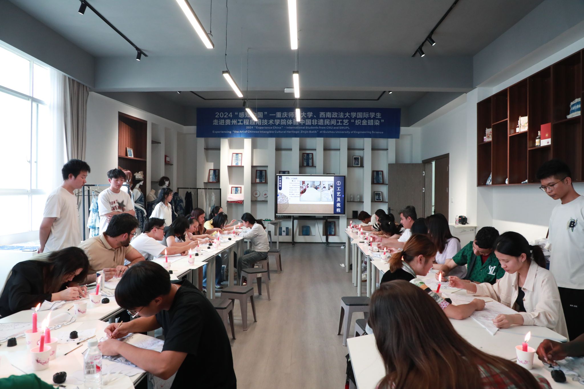 7月14日一7月16日,我校开展“感知中国”——普职融通渝黔行活动。来自不同国家的23名中外青年参观我校东区工程实训中心;开展了中国非遗民间工艺课程——织金蜡染(扎染);参观贵州宣慰府;体验秀丽的山川风物、淳朴的风土人情、多彩的民族文化、美味的特色饮食。