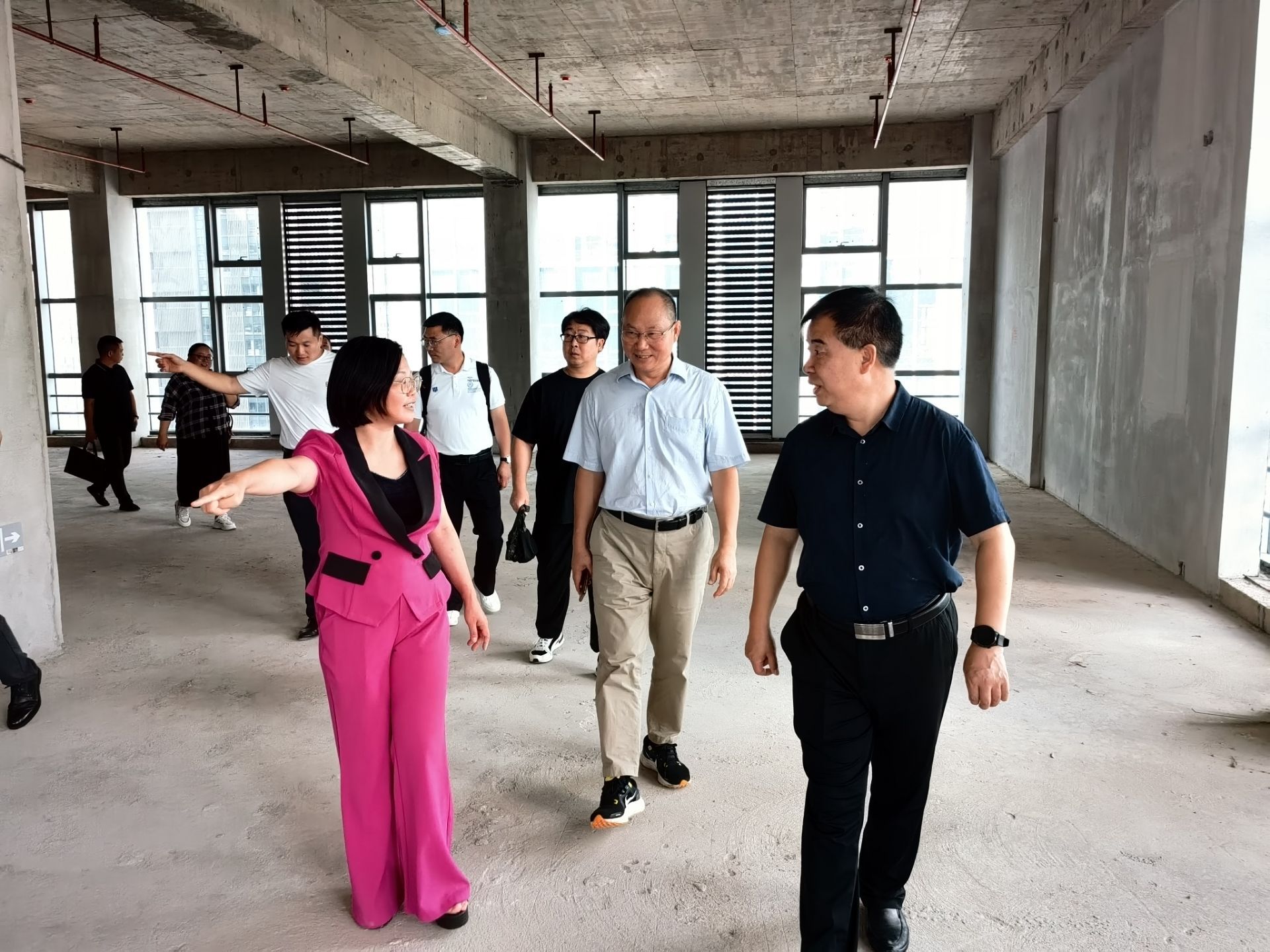 林国凤向向贤礼、徐霞辉介绍聚心教育公司新办公地点