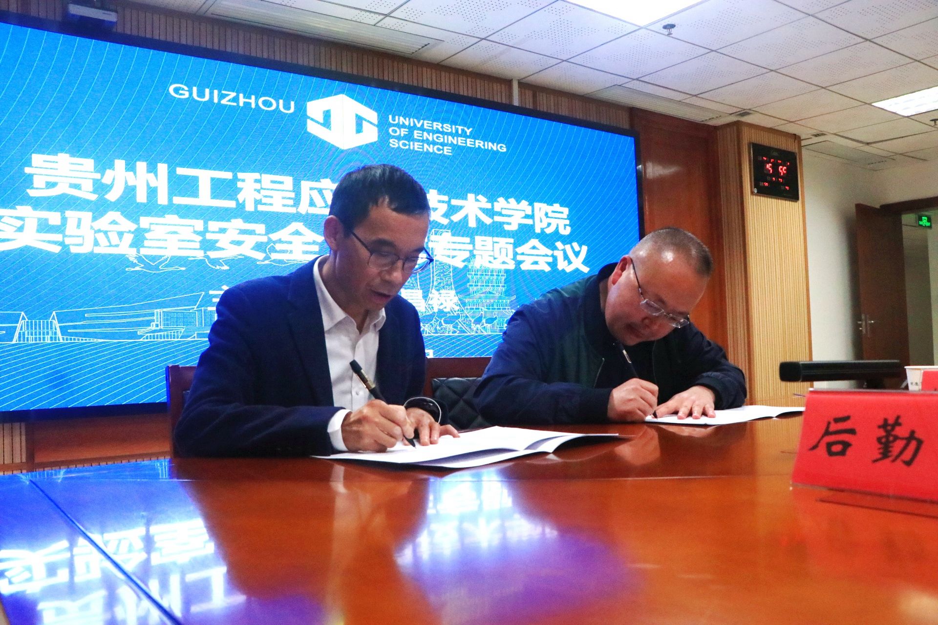 会上讨论并提议了我校实验室安全管理委员会委员名单;教务处相关负责人汇报了目前实验室基本信息备案工作的开展情况;陈昌禄代表学校与各学院(单位)主要负责人签订贵州工程应用技术学院安全管理工作责任书。