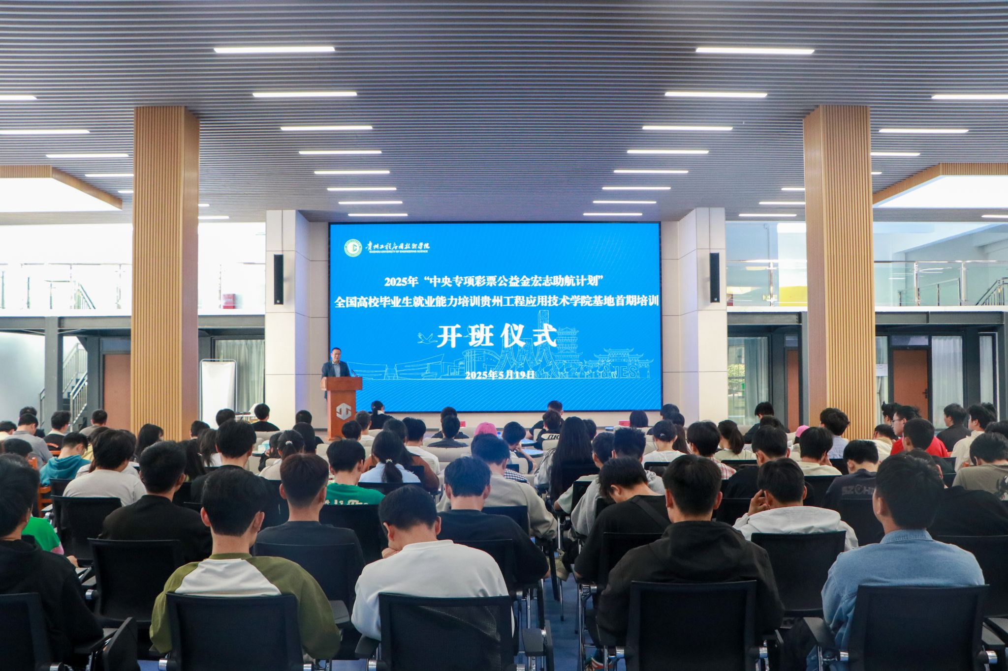 为深入贯彻习近平总书记关于高校毕业生就业工作的重要指示精神,落实党中央、国务院“稳就业”“保就业”决策部署,为地方经济发展提供有力人才支撑。5月19日,“中央专项彩票公益金--宏志助航计划”全国高校毕业生就业能力培训贵工程基地首期培训开班仪式在我校叔仪楼一楼大厅召开,我校党委委员、副校长赵军出席此次仪式。仪式由招生就业处负责人丁虹主持。