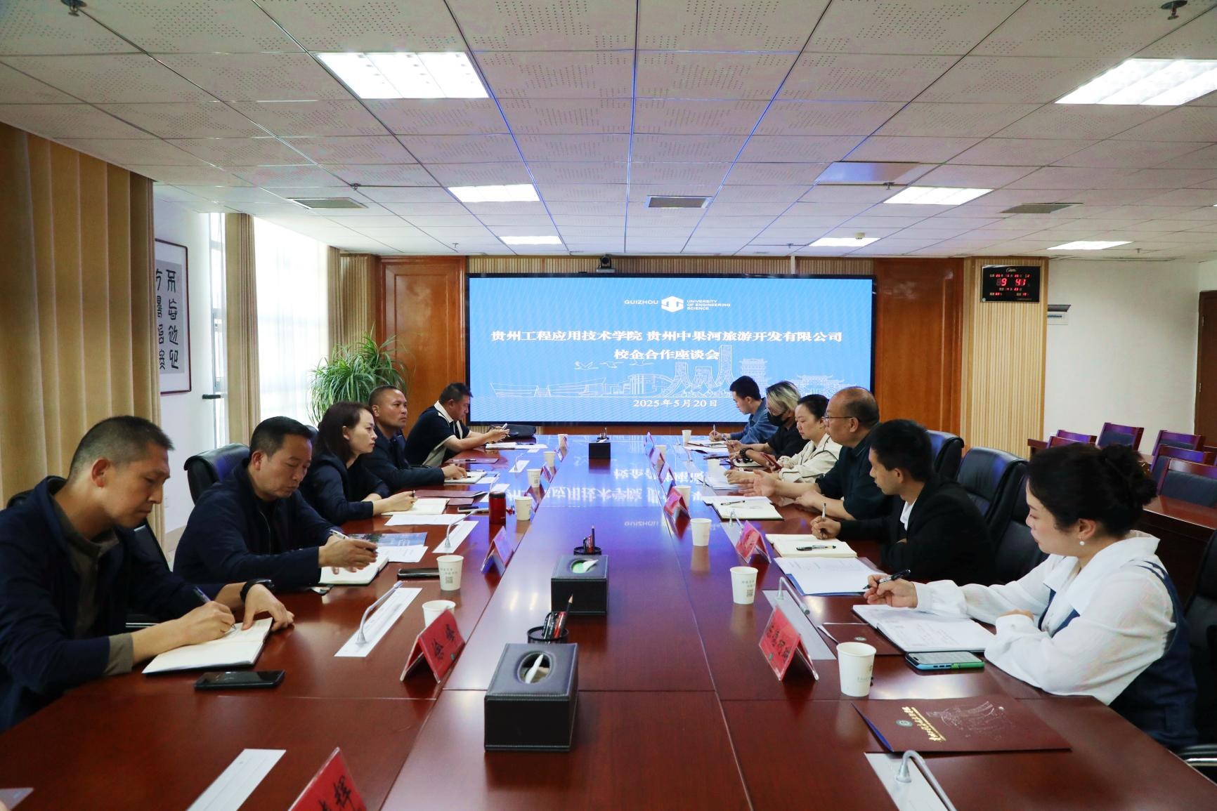 5月20日上午,贵州中果河旅游开发有限公司董事长陈松一行到我校开展校企合作交流座谈会,座谈会在西区综合楼802会议室召开,我校党委委员饶萍出席并主持会议。