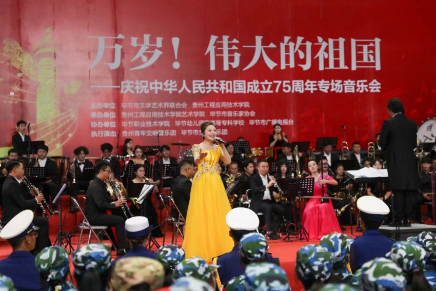 9月29日,毕节市庆祝中华人民共和国成立75周年专场音乐会在贵州工程应用技术学院绣山体育馆举办。活动由毕节市文学艺术界联合会、贵州工程应用技术学院主办,贵州工程应用技术学院艺术学院、毕节市音乐家协会承办,毕节职业技术学院、毕节幼儿师范高等专科学校、毕节市广播电视台协办。