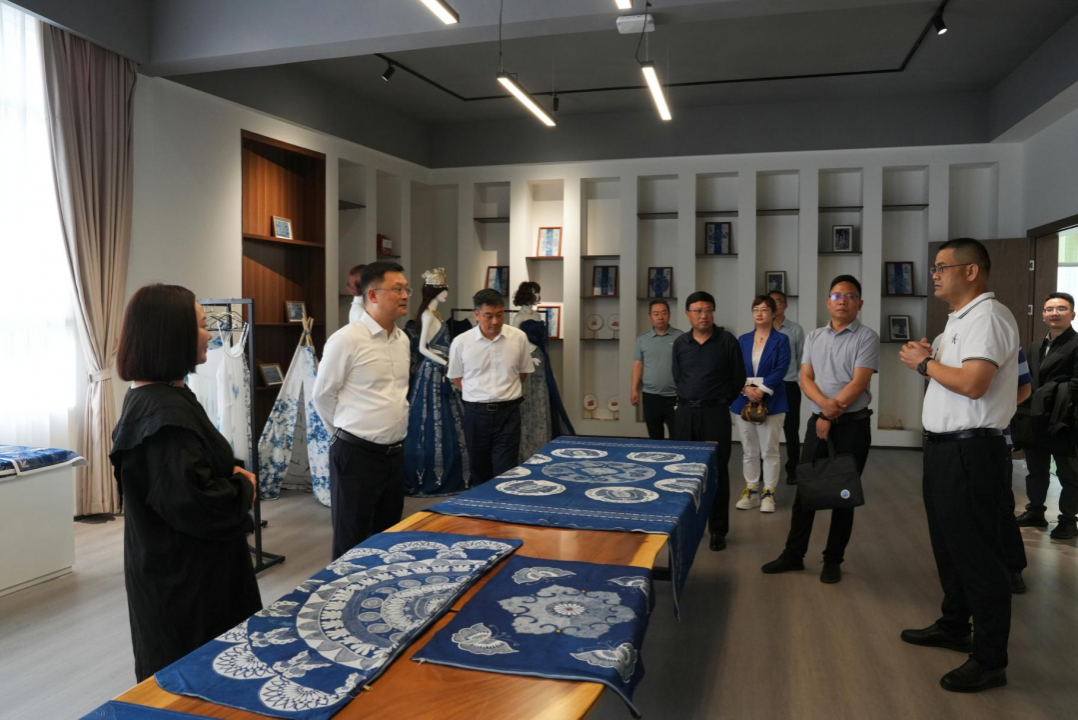 会前,毕节市人民政府副市长梁铮一行,中国长江三峡集团有限公司贵州分公司副总经理石劲草,在我校党委委员、副校长朱杰的陪同下参观了“织金苗族蜡染技艺传承助力乡村振兴研究”项目展示。