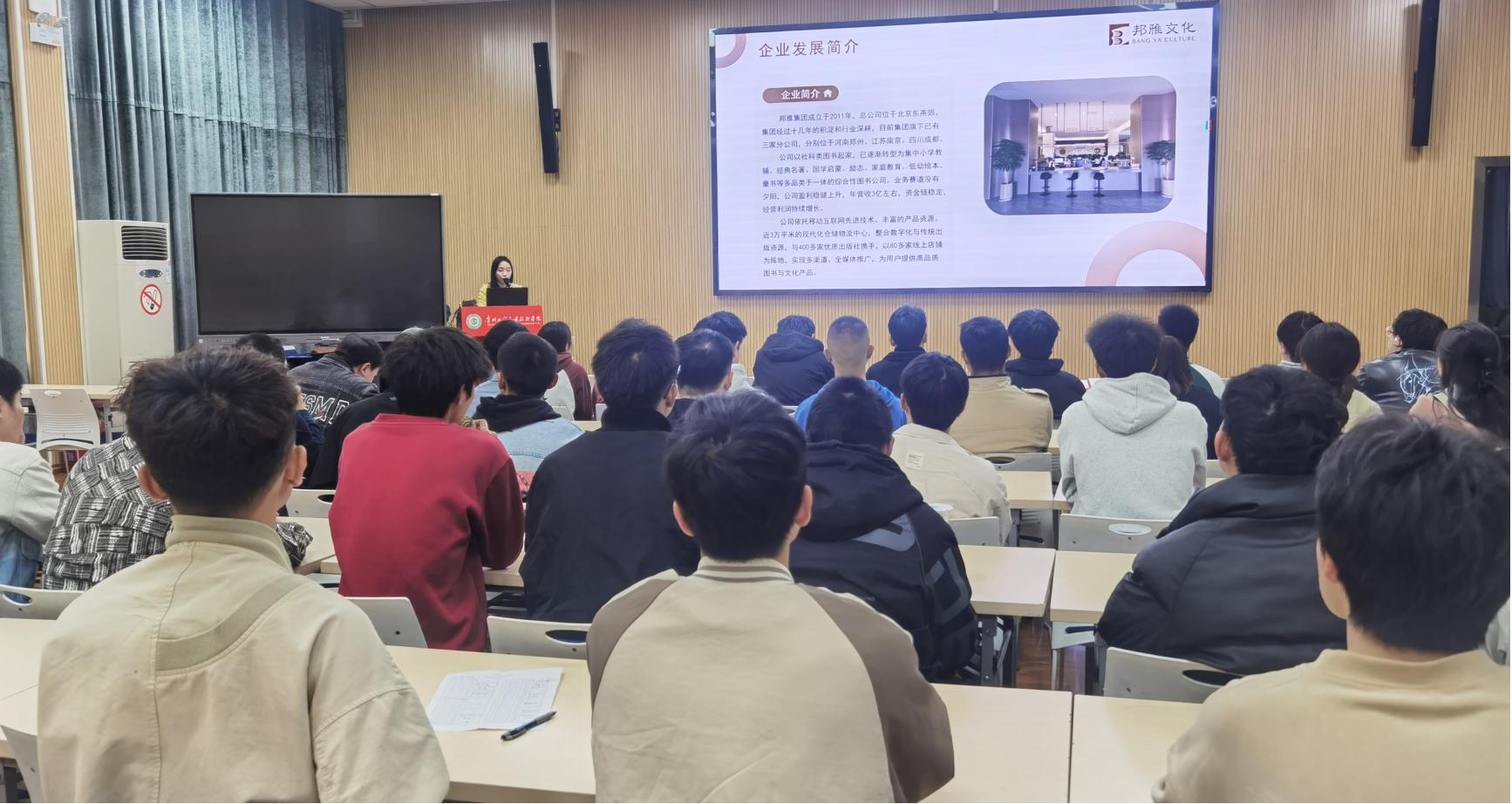 (图为邦雅公司到校宣讲)
