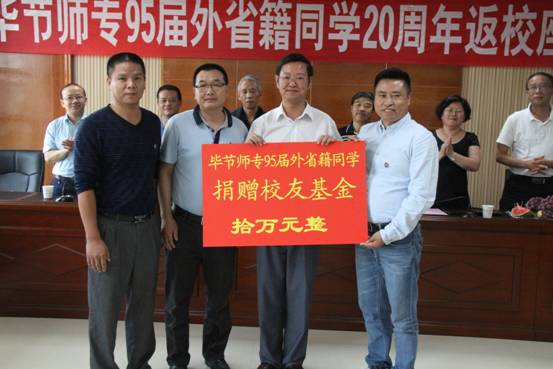 会上,从全国各地赶到母校的校友们对母校欣喜的发展现状,美好的愿景,分别从教学设施、环境建设、人才培养等方面深入讨论,踊跃发言,带着对母校浓浓的情谊,一致决定向母校捐赠10万元校友基金。