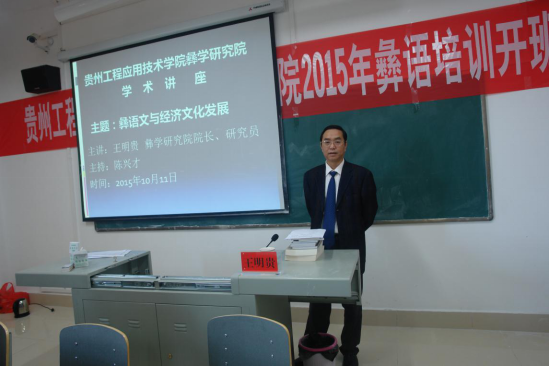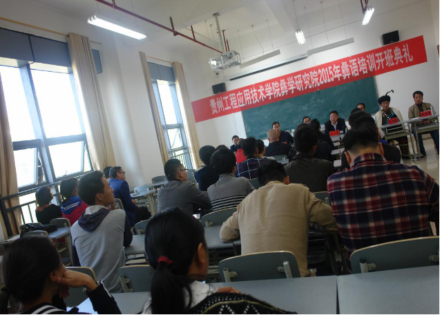 昨日(2015年10月11日),在贵州工程应用技术学院西区综合楼306教室召开了彝学研究院2015彝语培训班开班典礼,由贵州工程应用技术学院组织部副部长陈兴才主持。