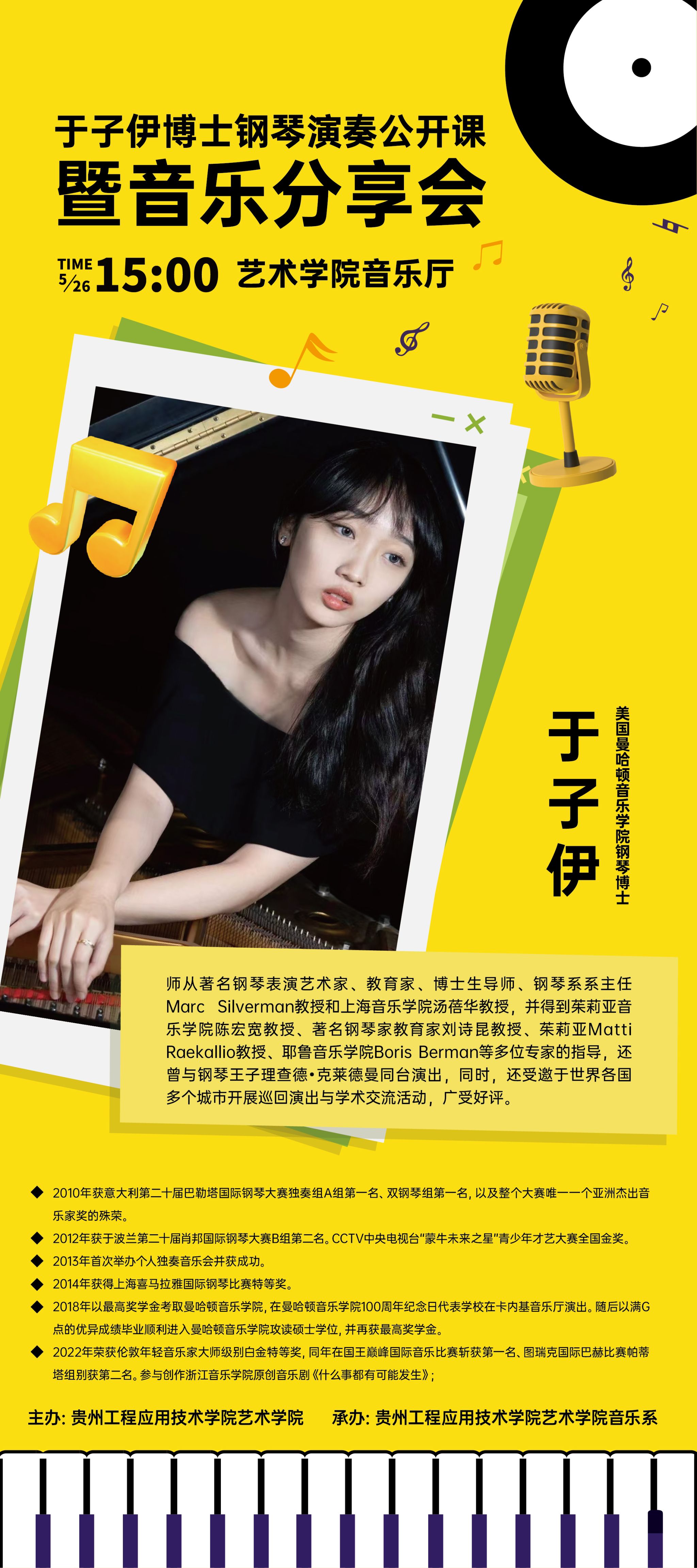 于子伊博士音乐分享会 时间5月26日下午15:00 地点:艺术学院音乐厅