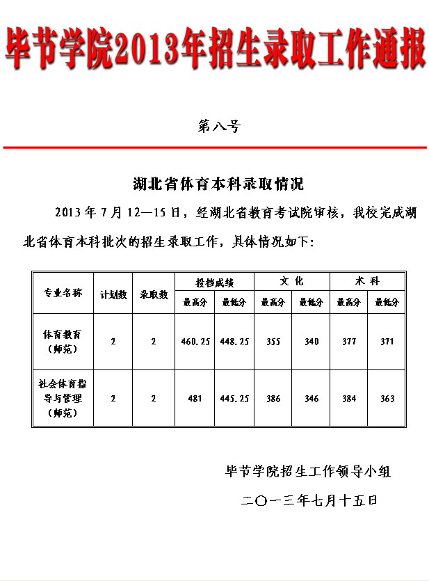 上一篇:2013年招生录取工作通报 (第九号)(贵州体育本科)