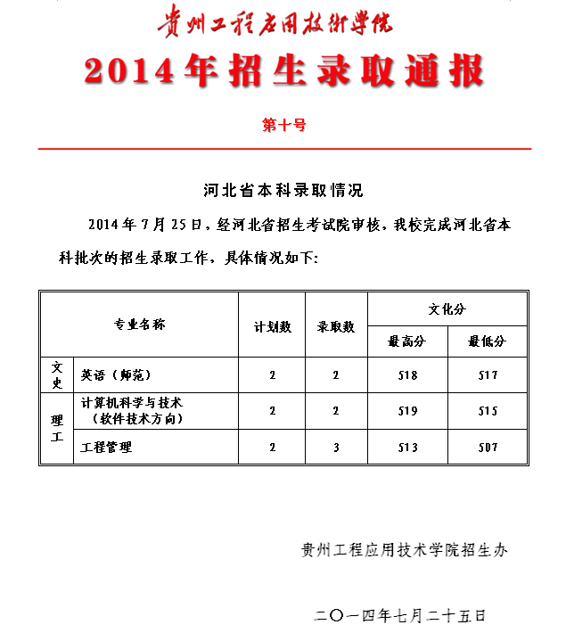 上一篇:2014年招生录取工作通报(第十一号)(贵州本科)