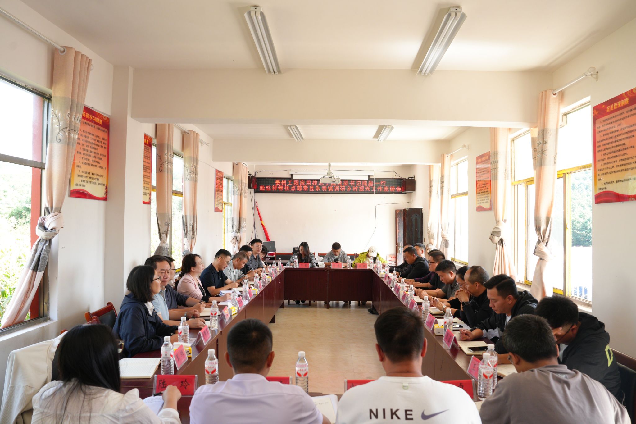 为深入学习贯彻习近平总书记关于乡村振兴的重要论述和习近平总书记视察贵州重要讲话精神,扎实推进乡村全面振兴,巩固拓展脱贫攻坚成果。10月11日上午,我校党委书记熊星,党委副书记王春华率相关部门负责人,前往学校乡村振兴工作驻村帮扶点赫章县朱明镇调研指导,并看望慰问我校选派驻村干部。