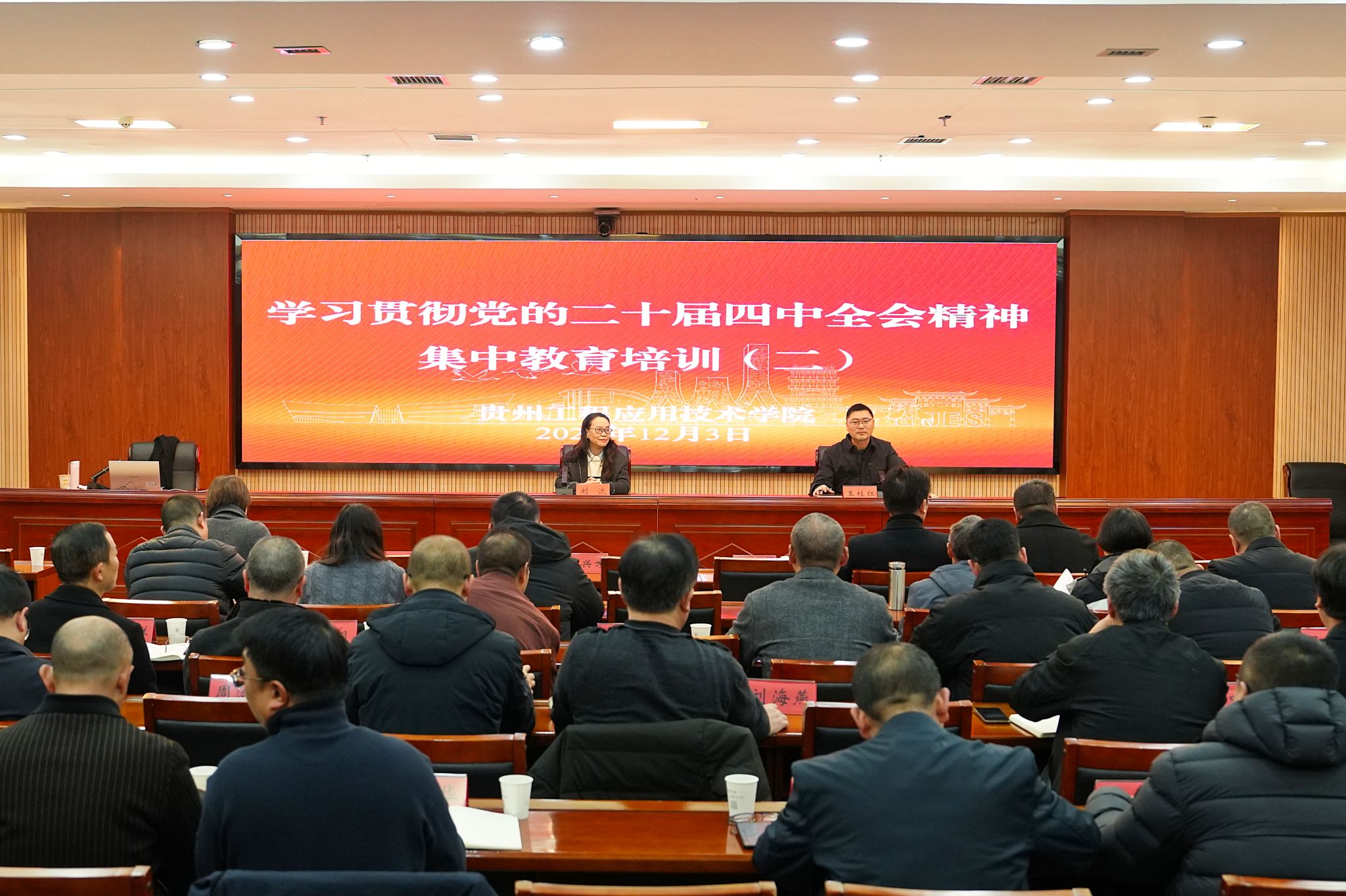 12月3日上午,我校特邀省委党校经济管理教研部刘流教授作党的二十届四中全会精神专题辅导讲座。讲座由党委常委、组织部部长王桂红主持。